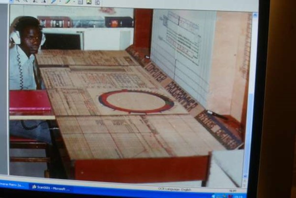Dr John Omara at VICTA first prototype (1981), at the hospital basement of Ndola Central Hospital located on the Copperbelt Province of Zambia.